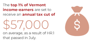 - Due to recent Congressional action, the top 1% of Vermont taxpayers are set to receive an average annual federal tax cut of $57,000 per filer, beginning in 2026