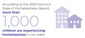 - According to the 2025 Vermont State of Homelessness Report, more than 1,000 children are experiencing homelessness in our state